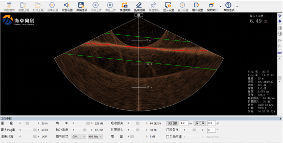 核心指標(biāo)——400kHz工作頻率、512個電子波束、1°×2°(1°×1°可選)波束寬度、143°波束開角、0.2-150m的測量范圍、0.75cm測深分辨率、60Hz最大Ping率,都是主流高端淺水多波束的標(biāo)準(zhǔn)指標(biāo)。